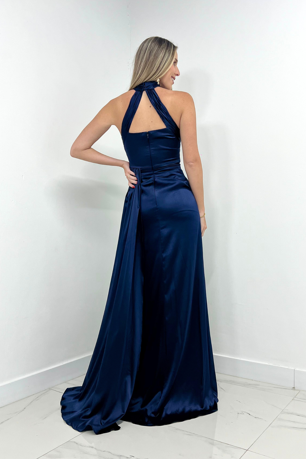 Vestido corte Halter azul